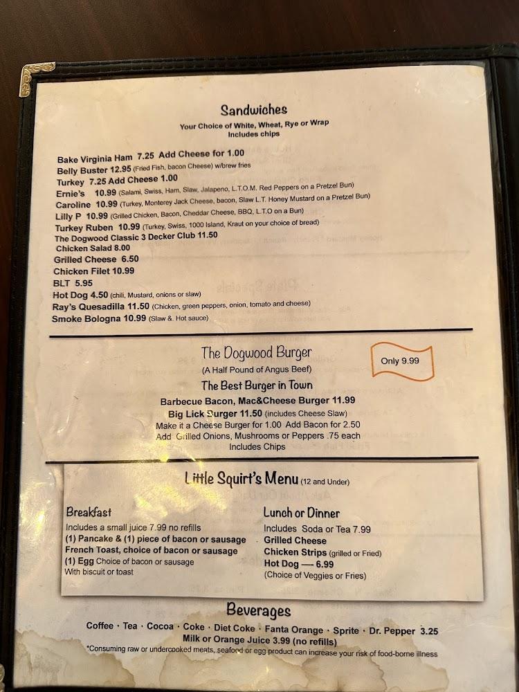 Dogwood's menu is a comforting mix of Southern favorites. Breakfast items include omelets, pancakes, and biscuits with sausage. Lunch features hearty sandwiches and daily specials that rotate. Dinners often highlight tasty plate specials and classic sides. The restaurant prides itself on home-cooked flavors that remind diners of family meals. Affordable prices keep diners coming back, making it a favorite spot for all.